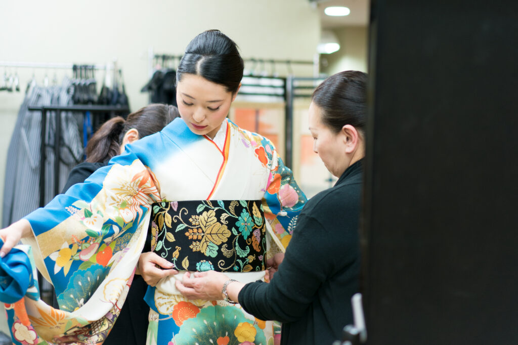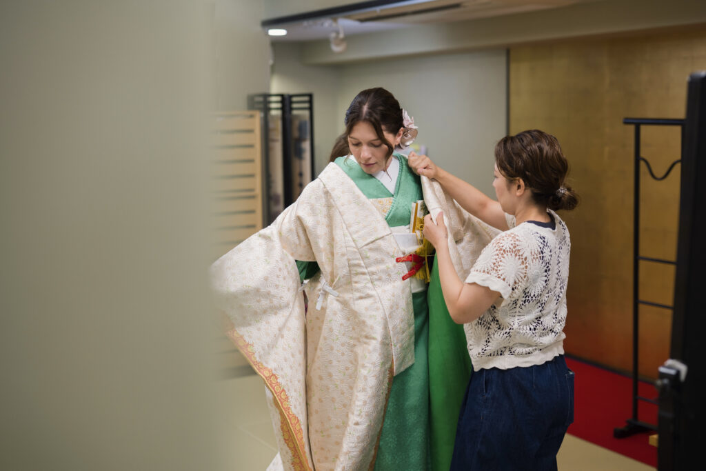 Enjoy professional kimono dressing and a simple hair setup before the photo session.