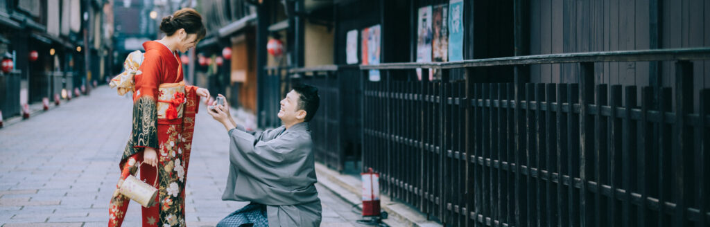 Optional kimono rental is available for couples who wish to add a traditional Japanese touch. Simple, romantic, and stress-free—perfect for preserving your unforgettable “yes” in Kyoto.