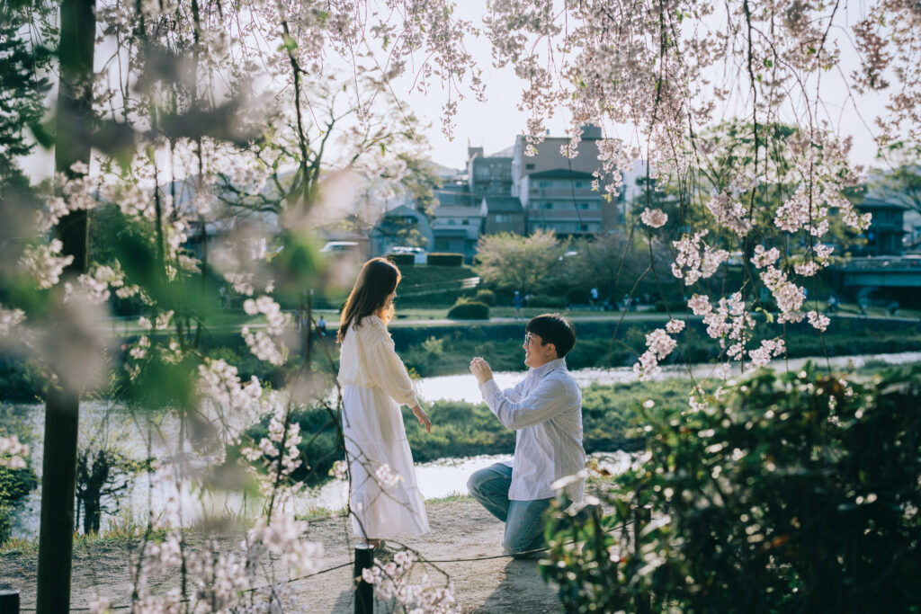 Create a timeless proposal moment in the heart of Kyoto at Maruyama Park. This plan includes an English-speaking local photographer who will discreetly capture your special moment, delivering 50+ professionally edited photos.